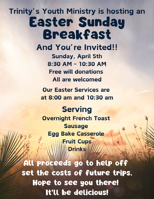 If you have any questions, please contact the youth director at youthministry@trinity.org
